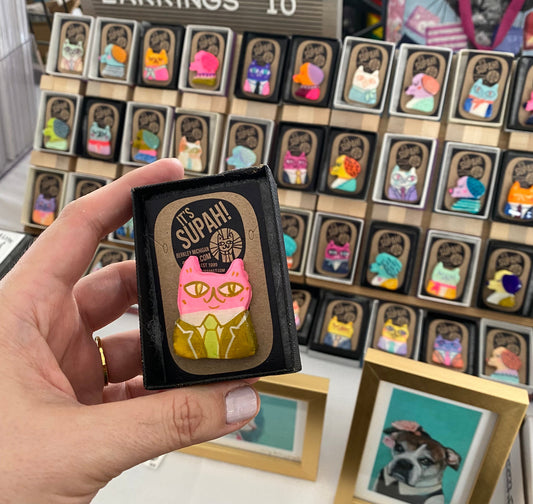 Black and White Grumpy Kitty / Happy Kitty Stud Earrings